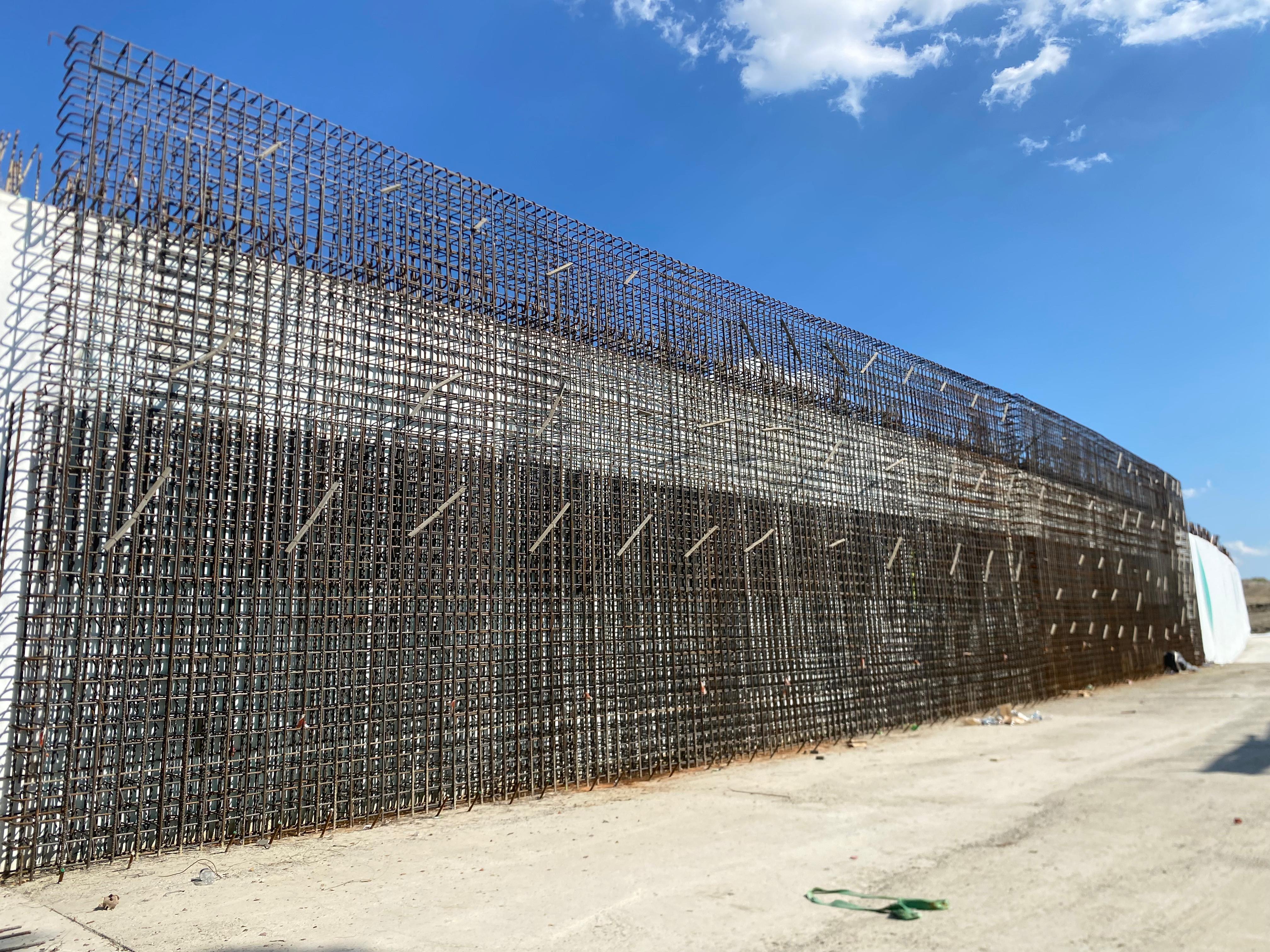 La posa del concio e delle platee, insieme all’elevazione dei muri, è stata eseguita in modo impeccabile, sotto il controllo degli ingegneri ANAS, adattando l’armatura in ferro alle reali condizioni del cantiere.